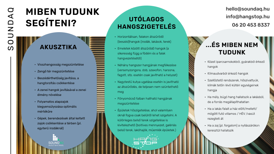 18+ éve éljük mindennapjainkat a hangok világában. Az évek alatt egyre több tudást és tapasztalatot gyűjtöttünk össze ügyfeleink révén, amit különböző formában szeretnék megosztani itt is. A hangok legalább olyan különbözőek, mint mi, emberek, ezért is fontos, hogy a zajok forrását megismerjük. Minél inkább képesek vagyunk megismerni egy hang természetét, annál biztosabb, hogy irányítani fogjuk tudni: felerősíteni vagy lecsökkenteni igény szerint.